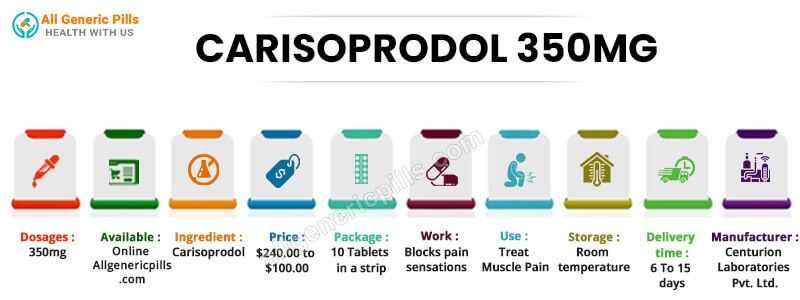 Buy Carisoprodol 350 mg is used as a pain killer and used for muscle pain and muscle discomfort; it helps relax our muscles from pain.